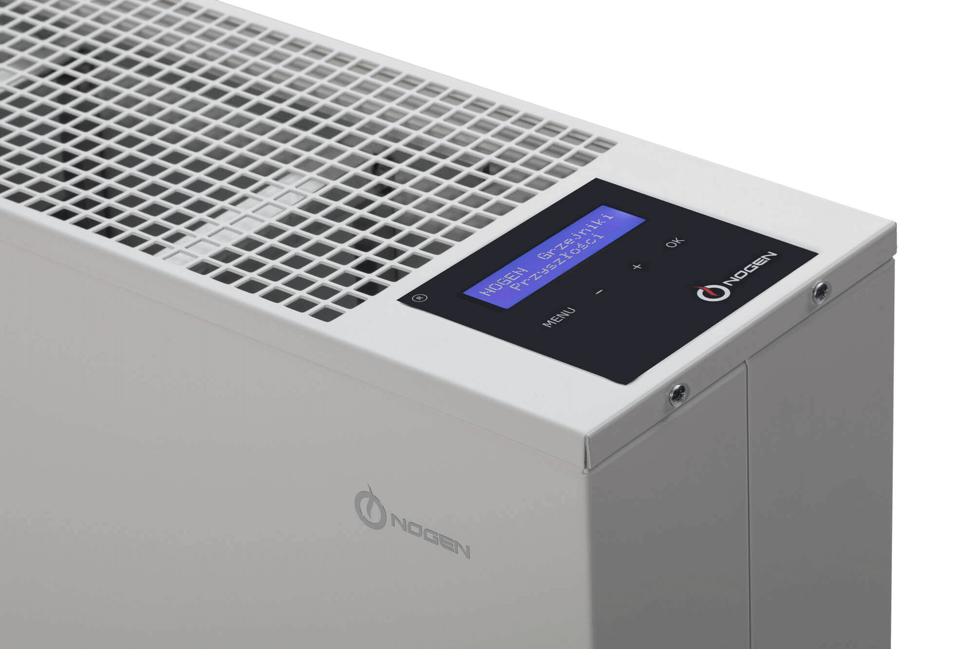 NOGEN Hochleistungskonvektoren überzeugen auf ganzer Linie dank zukunftsorientierter und patentierter Technologie. Der moderne Radiator aus hochwertigem Aluminiumblech erzeugt ohne Vorwärmen und in kürzester Zeit eine hohe Temperatur von 150-165°C, die mit einer enormen Geschwindigkeit von 0,8-1,2 m/s im Raum verteilt wird. Im Vergleich zu herkömmlichen Elektroheizkörpern mit vergleichbarer Leistung, erwärmt die NOGEN Elektroheizung Räume dreimal schneller, was wiederum den Energieverbrauch um ein Drittel senkt. Eigens entwickeltes und patentiertes System von Heizwendeln garantiert, dass die elektrische Energie zu 100% effizient in Wärme umgewandelt wird. Eine professionelle thermische Sicherung schützt vor Überhitzung und bietet zuverlässigen Überstromschutz.